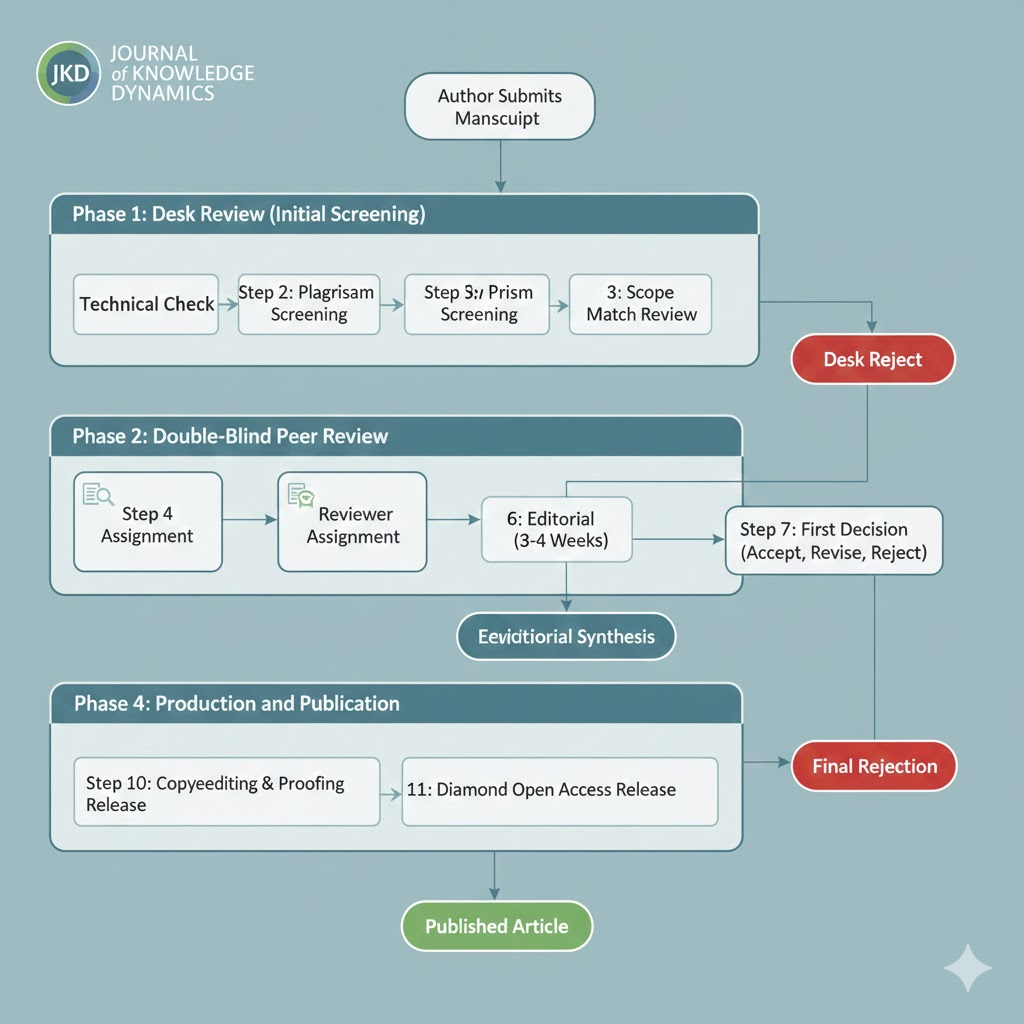 - Step 3: Scope Match. An Editor reviews the paper for “Knowledge Dynamics” relevance. If the paper does not touch on Management, Knowledge Transfer, or Digitalization (AI), it is “Desk Rejected” to save the reviewers’ time.
